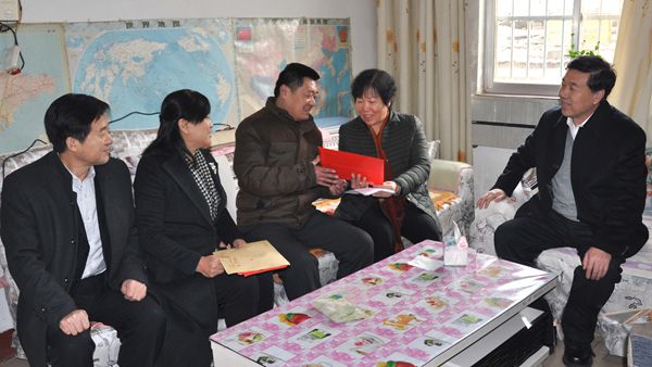 - 1月16日,省總工會(huì)副主席魏麗、冶金公司經(jīng)理助理劉松林、工會(huì)主席劉純玉,副主席李東強(qiáng)等領(lǐng)導(dǎo),在市總副主席劉蓬、產(chǎn)業(yè)工會(huì)主任于明、耐材公司黨委副書記、紀(jì)委書記、工會(huì)主席鄧亦庭等領(lǐng)導(dǎo)的陪同下看望耐材困難職工,給他們送去新春的祝福和慰問金,領(lǐng)導(dǎo)們的親切關(guān)懷讓我們的困難職工在寒冷的冬日里感受到了黨和政府的關(guān)懷和溫暖。