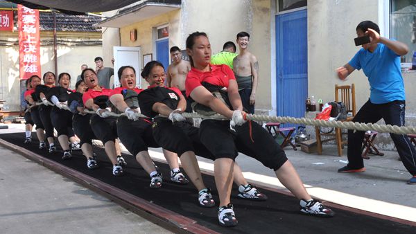 - 在淄博市總工會(huì)的高度重視下,集團(tuán)公司把組織參賽當(dāng)作一項(xiàng)光榮任務(wù)。女子拔河隊(duì)在短時(shí)間內(nèi),很好地解決工作與訓(xùn)練之間的矛盾,精心制訂訓(xùn)練計(jì)劃,以為淄博市、山東耐材集團(tuán)爭(zhēng)光的強(qiáng)烈信念、以山東耐材集團(tuán)“信恒如山,創(chuàng)新超越”的企業(yè)精神、以耐材職工特別能吃苦、特別能戰(zhàn)斗的精神,克服種種困難,全力投入到艱苦訓(xùn)練當(dāng)中。訓(xùn)練期間正值在天氣炎熱、酷暑時(shí)節(jié),隊(duì)員們不懼辛苦、勇于吃苦,頂烈日、冒酷暑,苦練體能、猛練力量,鍛煉耐力、磨練意志,操練技術(shù)、演練戰(zhàn)術(shù),在天氣炎熱情況下持續(xù)進(jìn)行高強(qiáng)度的拔河專項(xiàng)訓(xùn)練。訓(xùn)練中,汗水一遍遍將衣服濕透、雙手的血泡磨起了一次又一次。