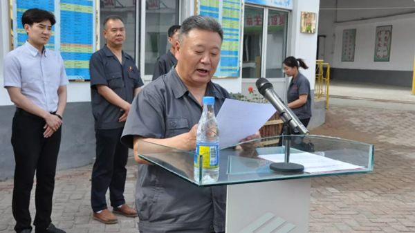 復(fù)產(chǎn)儀式上,山東耐材集團(tuán)公司黨委書(shū)記、董事長(zhǎng)車(chē)連房發(fā)表熱情洋溢致辭。