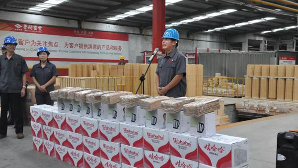- 7月31日,山鋼集團工會主席盧彤書一行為山東耐材魯耐窯業(yè)生產(chǎn)一線的職工們送來了礦泉水、毛巾、電加熱壺等防暑降溫慰問品,并代表山鋼集團侯軍董事長、陶登奎總經(jīng)理向在炎炎夏日下仍工作在生產(chǎn)一線的職工致以敬意,對他們?yōu)榻ㄔO(shè)幸福和諧企業(yè)做出的貢獻表示感謝。